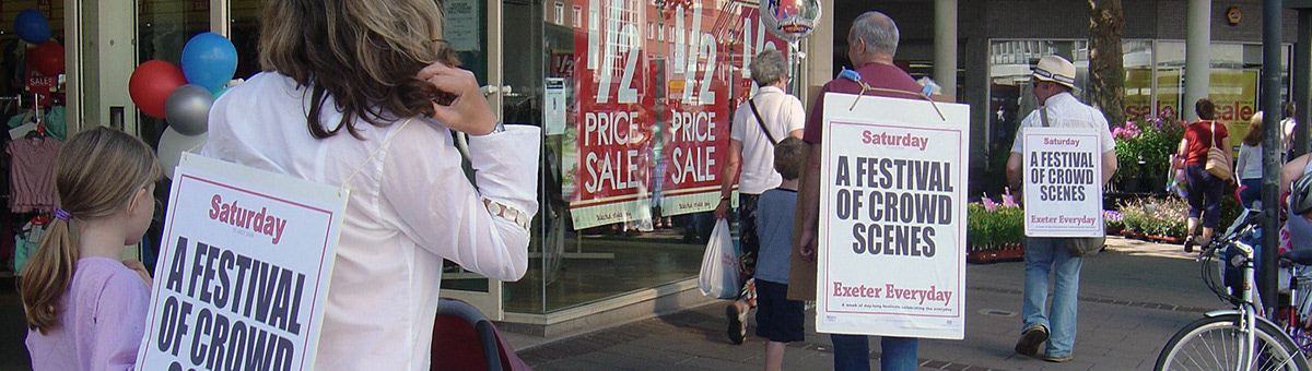 Most festivals emphasise the unusual and the extraordinary. Very rarely is there an opportunity to acknowledge the everyday. Exeter Everyday filled that gap with a week of day-long festivals celebrating different aspects of everyday life in Exeter. Anyone in the city could take part. It was not necessary to do anything special. Simply to take notice of the everyday, guided by or ignoring the theme of the day.
