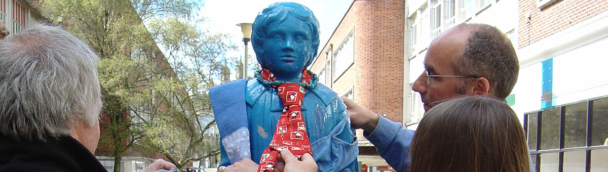 Homeland was a month-long project presenting artists’ work in everyday locations in the city centre of Exeter. This series of contemporary art exhibitions, interventions, performances and events essentially posed the question 'What is Middle England?'. It also featured work by Tariq Alvi, Ansuman Biswas, Jem Finer, Guillermo Gómez-Peña, Misha Myers and Grayson Perry.
